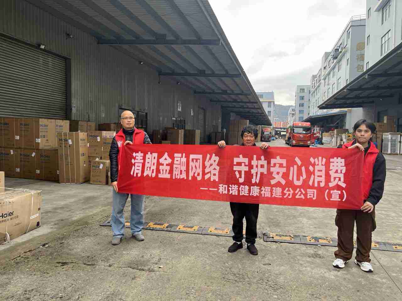 为了响应2026年“3·15”金融消费者权益保护教育宣传活动号召,切实将金融知识送到新业态群体身边,2026年3月6日,和谐健康福建分公司走进闽侯县祥谦镇皇杰物流园,针对货车司机、快递员等物流从业群体开展了一场别开生面的金融消保主题宣传活动。