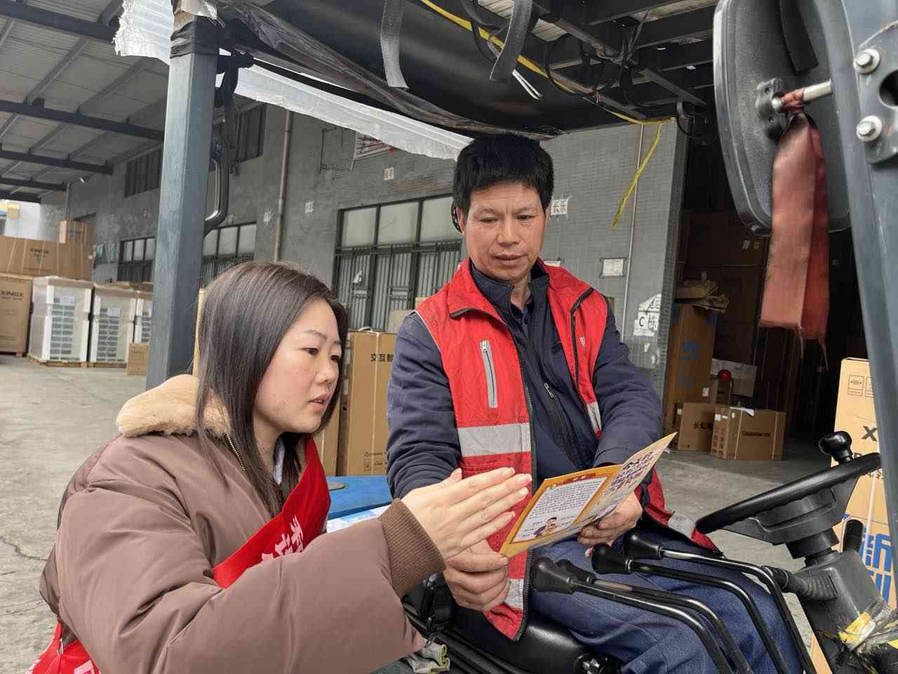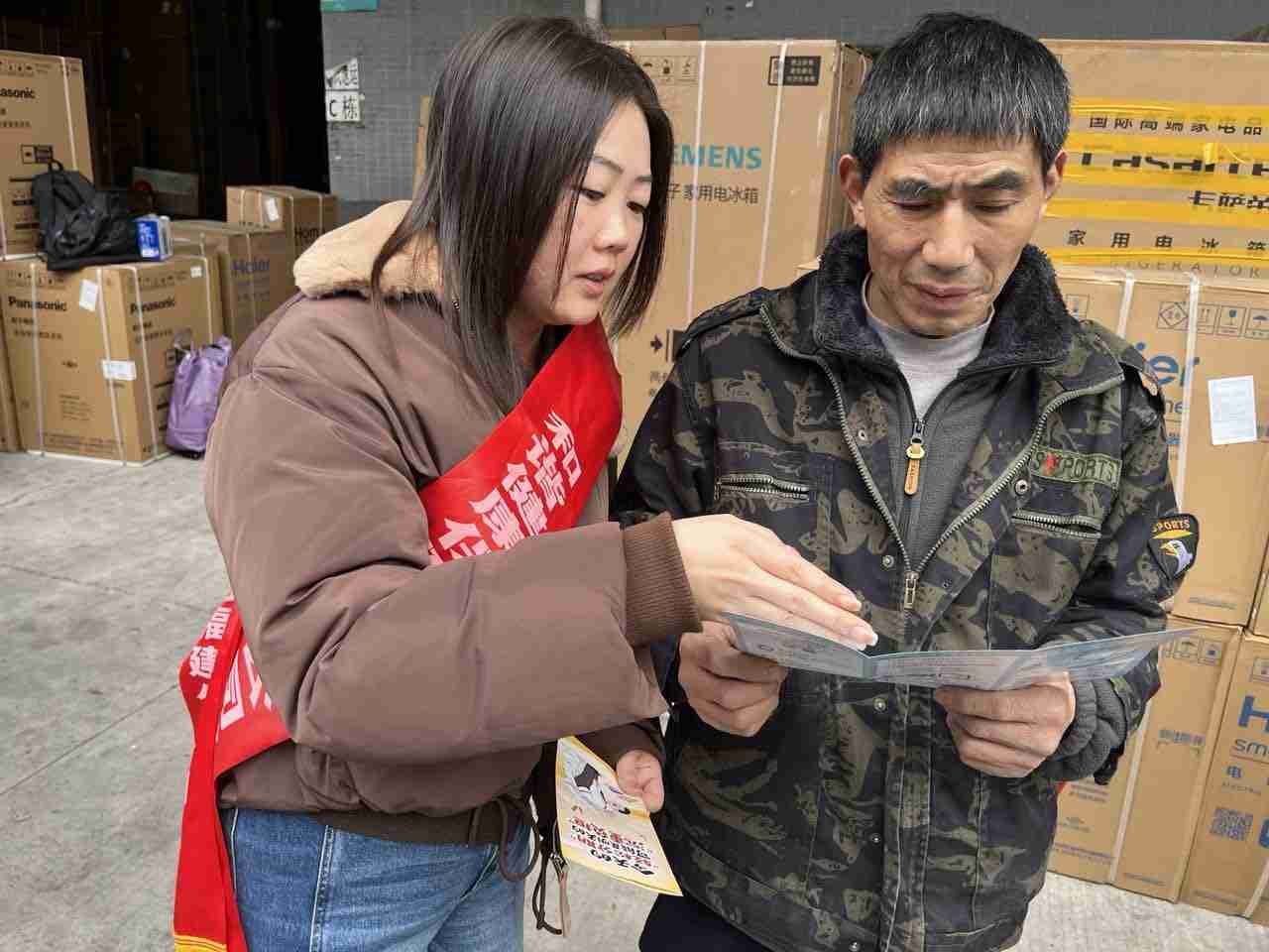 物流园区车流不息,非常繁忙。货车司机和快递员群体常年奔波在路上,是金融知识普及的“盲区”。他们工作时间长、信息获取渠道有限,成为电信诈骗、非法集资等金融风险的易感人群。和谐健康福建分公司宣传人员在快递分拣区、货车停靠点设置了流动宣传点,利用司机装卸货、休息间隙开展“见缝插针”式宣讲。宣传人员还贴心准备了金融知识宣传折页等物料发放给司机们,方便司机随车携带、随时翻阅。