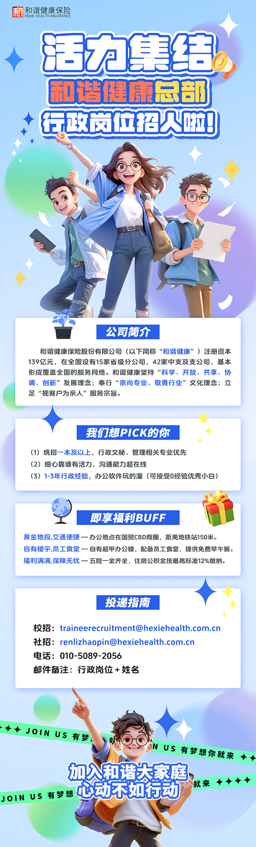 招聘启事|和谐健康总部行政岗,邀你同行!